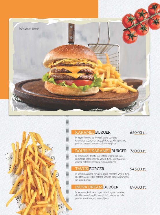 Diğer Başlıklar GÜNE BAŞLARKEN ÇORBALAR & KARAVANA YUMURTALI LEZZETLER ARA SICAKLAR GOZLEMELER TOSTLAR SANDWICHES DÜRÜM LEZZETLERİ KREPLER PİZZALAR SALATALAR MAKARNALAR MANTILAR BEYAZ ETLER KIRMIZI ETLER TATLILAR SICAK İÇECEKLER SOĞUK İÇECEKLER MEZELER EKSTRALAR