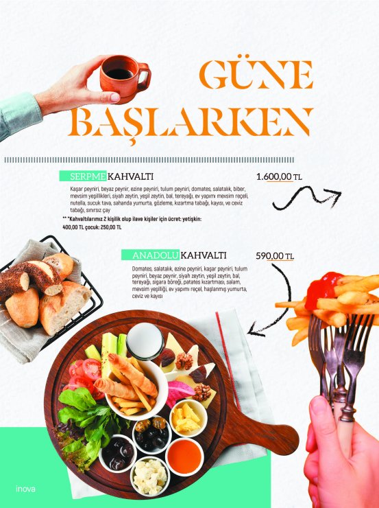 Diğer Başlıklar ÇORBALAR & KARAVANA YUMURTALI LEZZETLER ARA SICAKLAR GOZLEMELER TOSTLAR SANDWICHES DÜRÜM LEZZETLERİ KREPLER PİZZALAR BURGERLER SALATALAR MAKARNALAR MANTILAR BEYAZ ETLER KIRMIZI ETLER TATLILAR SICAK İÇECEKLER SOĞUK İÇECEKLER MEZELER EKSTRALAR