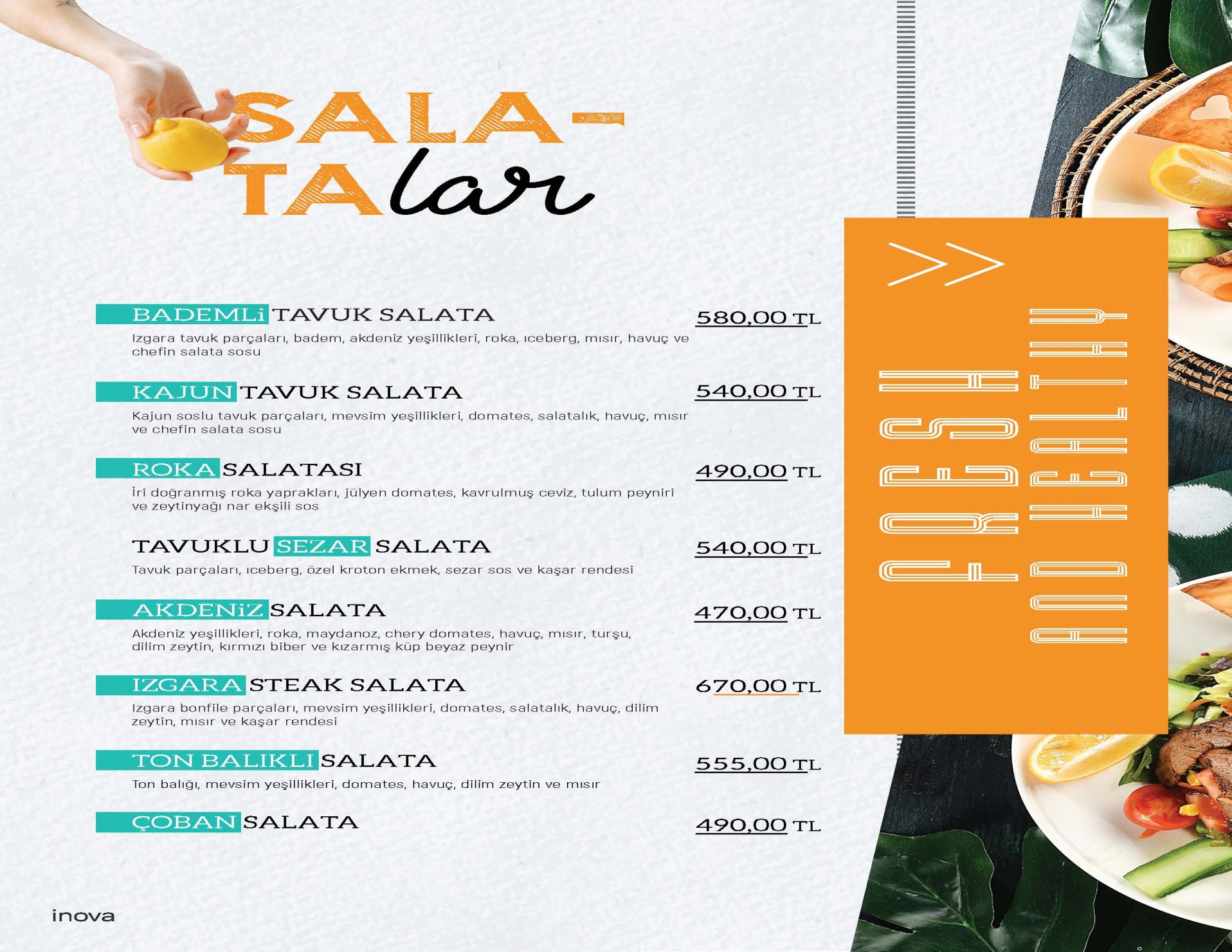 Diğer Başlıklar GÜNE BAŞLARKEN ÇORBALAR & KARAVANA YUMURTALI LEZZETLER ARA SICAKLAR GOZLEMELER TOSTLAR SANDWICHES DÜRÜM LEZZETLERİ KREPLER PİZZALAR BURGERLER MAKARNALAR MANTILAR BEYAZ ETLER KIRMIZI ETLER TATLILAR SICAK İÇECEKLER SOĞUK İÇECEKLER MEZELER EKSTRALAR