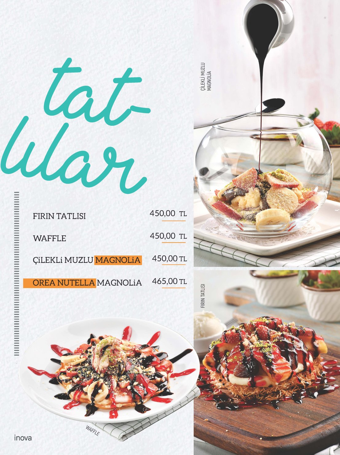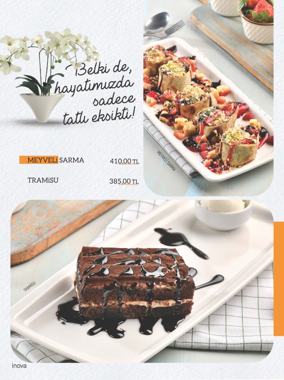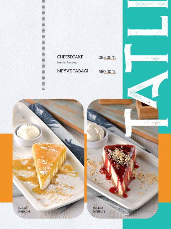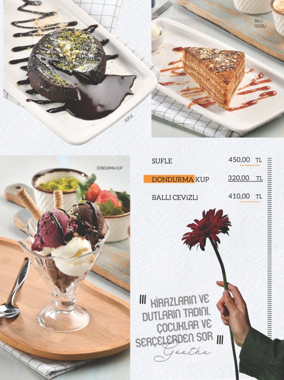 Diğer Başlıklar GÜNE BAŞLARKEN ÇORBALAR & KARAVANA YUMURTALI LEZZETLER ARA SICAKLAR GOZLEMELER TOSTLAR SANDWICHES DÜRÜM LEZZETLERİ KREPLER PİZZALAR BURGERLER SALATALAR MAKARNALAR MANTILAR BEYAZ ETLER KIRMIZI ETLER SICAK İÇECEKLER SOĞUK İÇECEKLER MEZELER EKSTRALAR